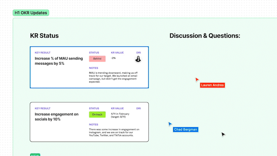 Add OKRs to your team hub Embed success metrics in your PRDs Check in on metrics progress for your weekly syncs